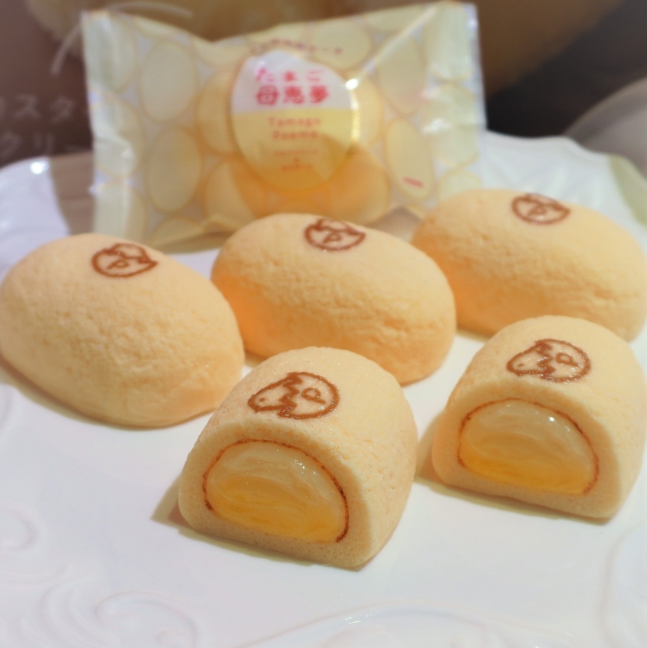 2層に分かれた、たっぷりのミルククリームとカスタードクリームを、ひよこの焼印が可愛いたまご型のふんわりケーキで包みこみました。